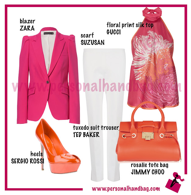 White pants and fuchsia blazer make this outfit the big trend for spring 2013.